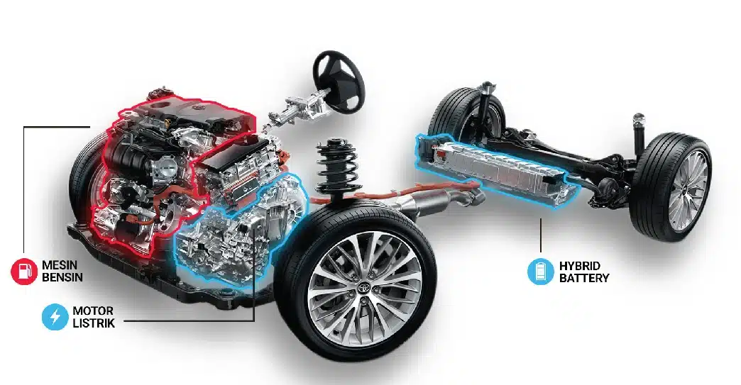 Pada inti sistem hybrid Toyota terdapat kombinasi mesin pembakaran internal (bensin) dan satu atau lebih motor listrik yang bekerja secara bergantian atau bersamaan. Komponen utama yang perlu dipahami:
